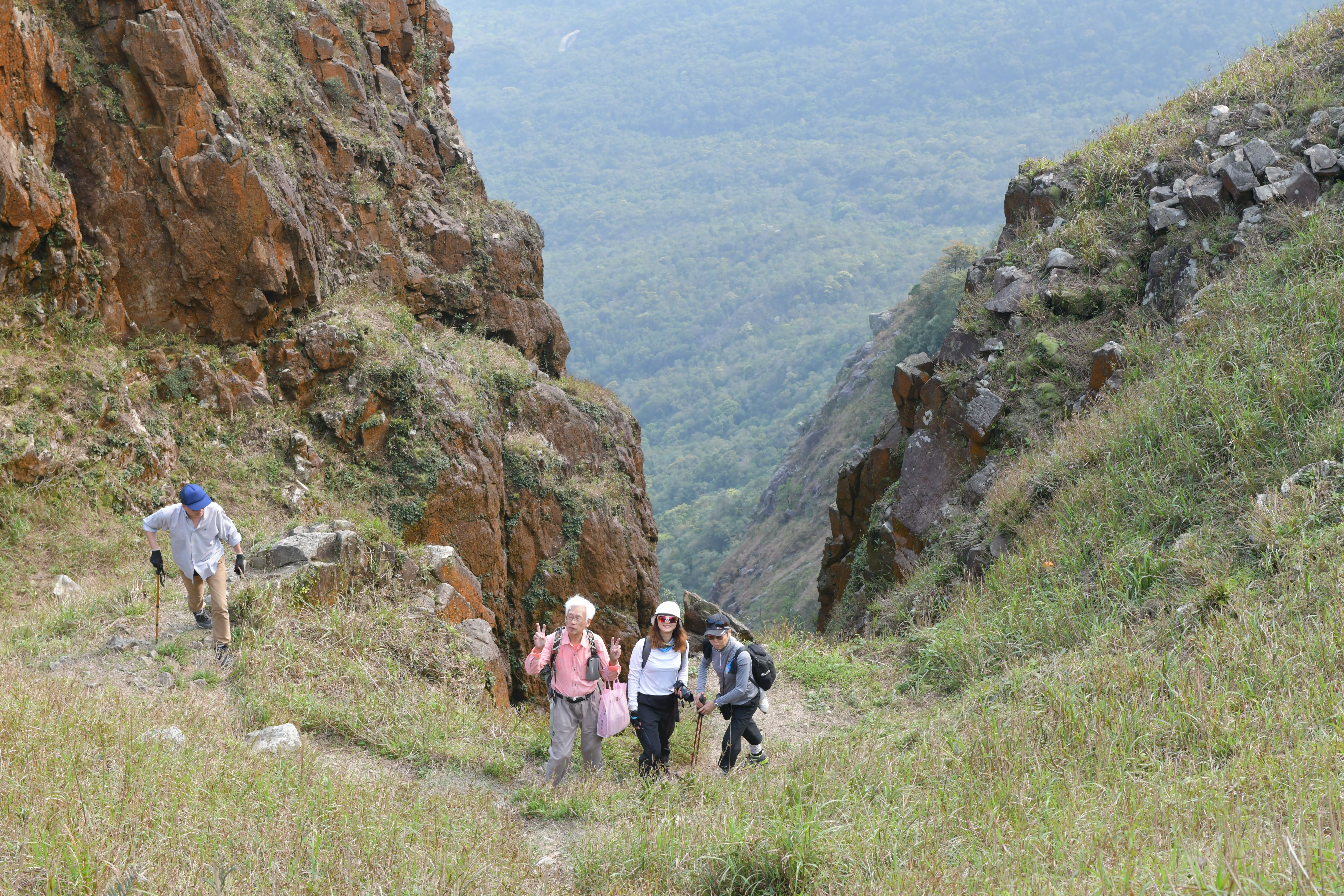 路線:蔴埔坪懲教署→引水道→茶壺咀脊→茶壺咀(650 米)→石天窗→橫山棧道→南天門→鳳凰徑→伯公坳